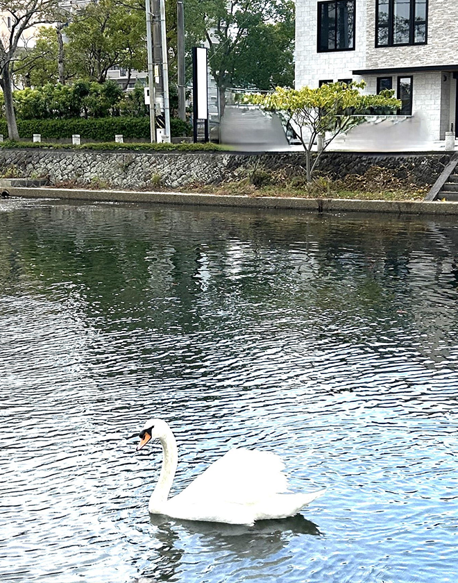 天神川の畔にある当院から、白鳥をよく見かけます。当院のロゴは、白く美しい白鳥のように歯がキレイになるとの想いを込めております。